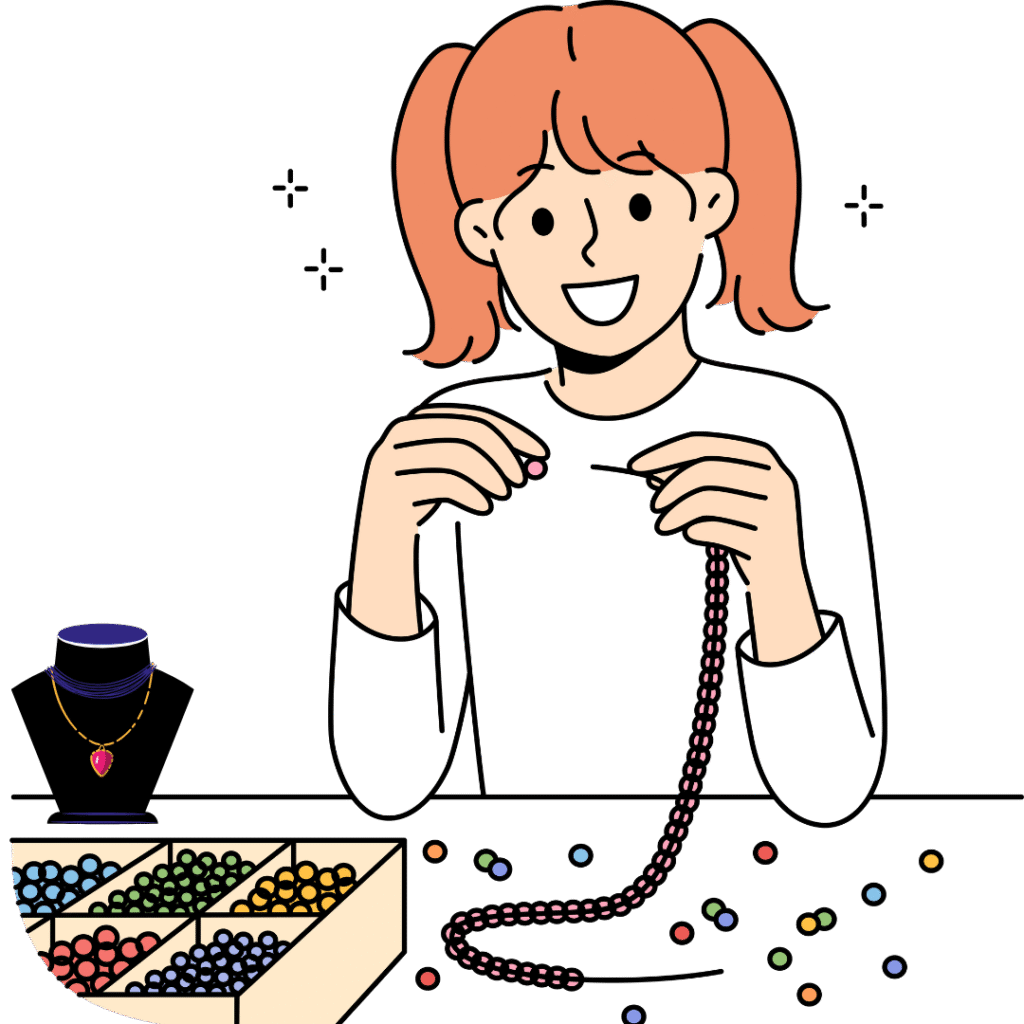 Practice with real materials. Work on sewing, jewelry making ,mirror work and more with step-by-step guidance